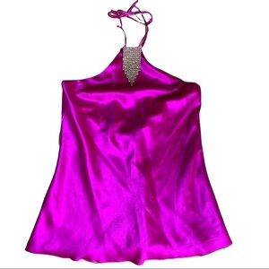Trina Turk Silk Halter Blouse Rhinestone Embellished Size P