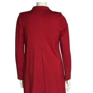 CAbi 3546 Celebration Houndstooth Red Ponte Long Jacket Coat Front Ruffle Large