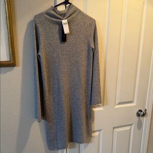 Elegant heather gray dress with long sleeves. Ideal for versatile styling. Soft and comfortable fabric. 100% cashmere