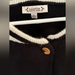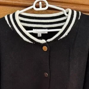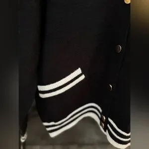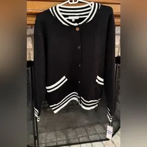Nanette Lepore Black & Cream Varsity Cardigan Sweater Size XL NWT