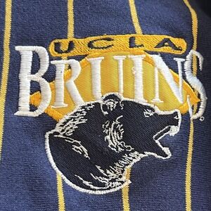 Item: Vintage UCLA Bruins mens sweater / sweatshirt with navy blue and yellow pinstripes and mock neck.