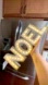 New light up Christmas NOEL counter sitting sign with snowflakes and gold glitter trim