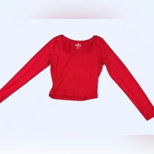 Hollister Women’s Long Sleeve Square Neck Seamless Baby Tee – Red ♥️ (Medium)