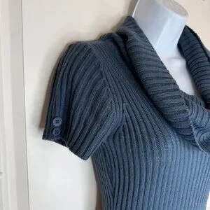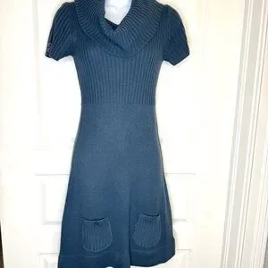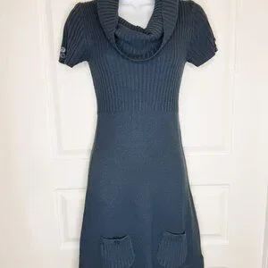 DEREK HEART Chambray color Bodycon Mini sweater Dress Ribbed top cowel neck with pocket accents