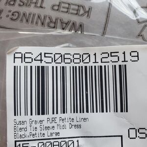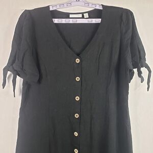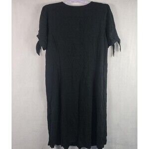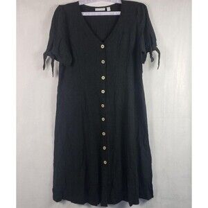 Susan Graver Pure Dress Womens Petite Large Black Linen Blend Tie Sleeve Midi