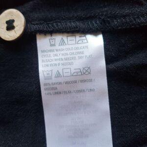Materials: 86% rayon / 14% linen (per care tag); soft woven fabric with natural drape.