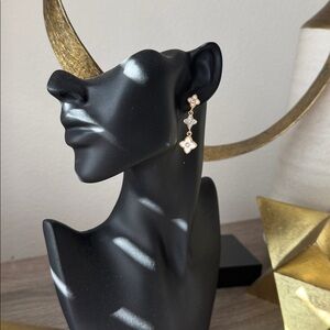 These stunning gold and white floral drop earrings add a touch of elegance to any outfit. Perfect for special occasions or everyday wear.