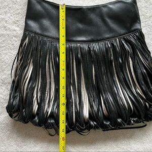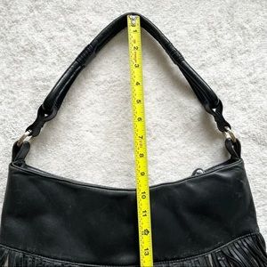 KATHERINE KWEI Black Leather And Metallic Fringe Hobo Purse Trendy Chic