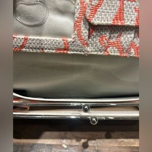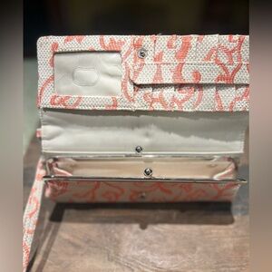 Poppie Jones Fabric wristlet Clutch Orange Cream Floral Removable Strap.