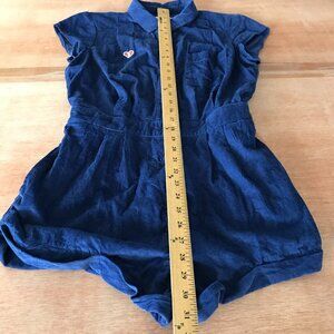 Urban Outfitters Corduroy Romper Women M Blue Snap Button Pockets Short Sleeve 18166