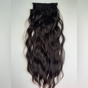Dark Brown Clip in hair extensions 22 in Water Wave hair