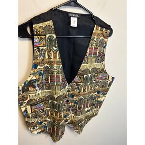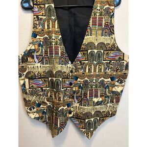 Vintage 90s III Main sleeveless button-up vest with bold Egyptian-inspired print