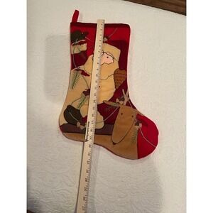 Vintage Santa Riding Reindeer Christmas Holiday Stocking Embroidered