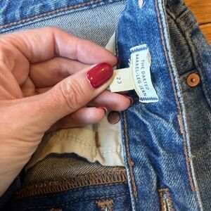 Barrel leg loose fitting jeans with button closure and frayed hems (as pictured). Worn once, in excellent condition.