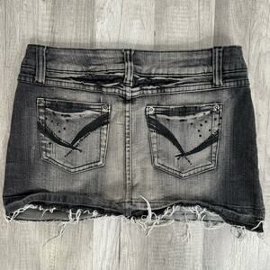 00s Mirco Mini Black Denim Jean Skirt Pocket Design Studded Cyber Y2K Size 5