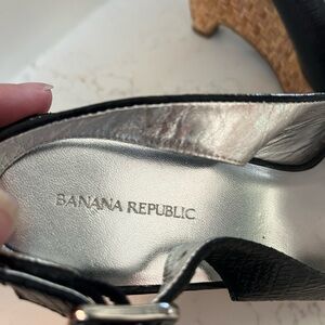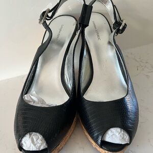 Banana Republic Black Croc Peep Toe Slingback Wedge Sandals