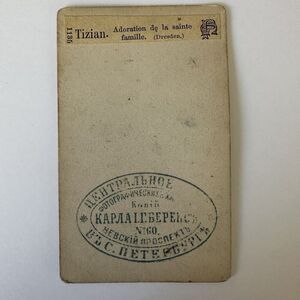 Antique CDV Card Tiziano Vecellio Adoration Of The Holy Family 4”x2.5”
