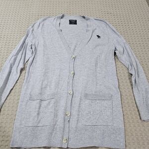Abercrombie & Fitch Icon Boyfriend Cardigan in a Gray Cotton Blend Knit Large
