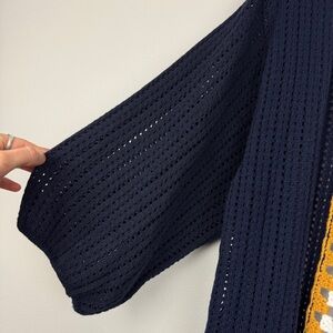 Anthropologie Square Crochet Knit Puff Sleeve Open Long Cardigan