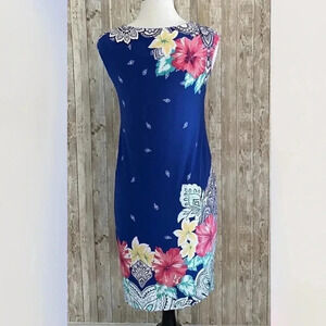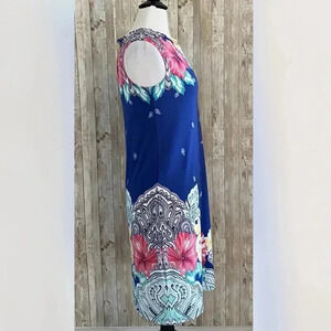 CHICO'S Iona Tia Dress Size 0/small Floral Stretchy Sleeveless Blue, new with tags.