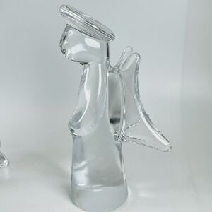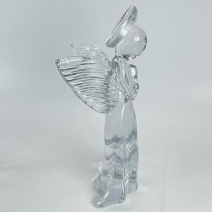 Pair Vtg Heavy Clear Glass Angel Figurine 7.5" Paperweight PR Taiwan Christmas