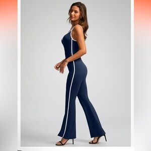 Vilanva L NIP NAVY BLUE TUMMY CONTROL FLARE LEG YOGA workout JUMPSUIT