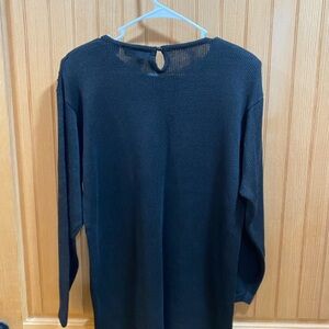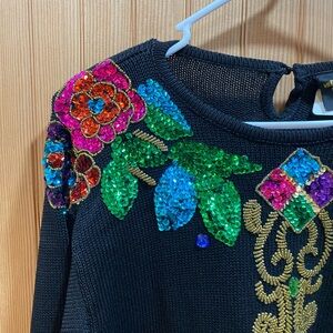 Elegant black tunic featuring vibrant floral embellishments and a gold decorative design. Perfect for special occasions.