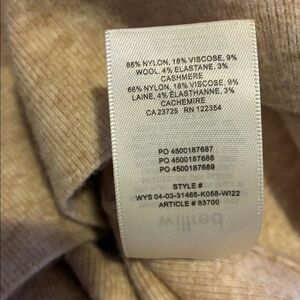 • 66% nylon, 18% viscose, 9% merino wool, 4% elastane, 3% cashmere