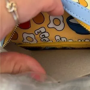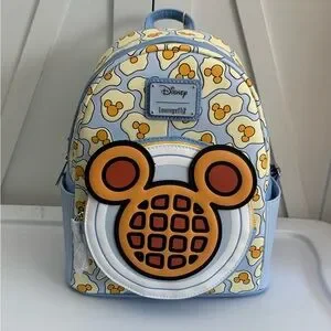Start your day off the Disney way with this mini backpack! Featuring an applique of a Mickey Mouse waffle on the front pocket, the body of the bag features an allover print of Mickey-shaped fried eggs. With a rubber fork zipper pull, embossed side pockets, and a sweet scent, this backpack is perfect for a trip to the Disney Parks. Don't forget the matching wallet sold separately!