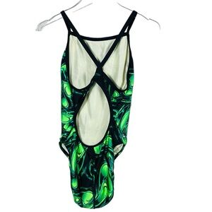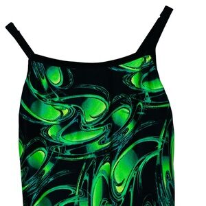 •Bright greens/black psychedelic multicolor design.