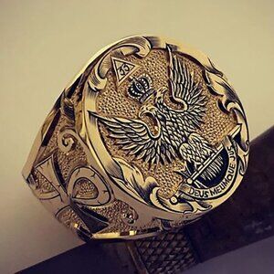 "Punk Alloy Round Street Trend Fashion Eagle Gold Rings for Man, INDN8467