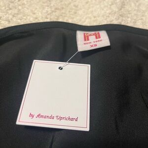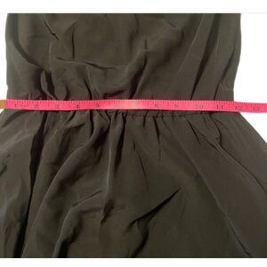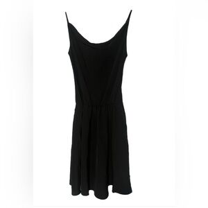 Amanda Uprichard spaghetti strap mini dress with a cowl neckline and adjustable straps. The waist measures 12 inches but stretches to 19. Other measurements shown.