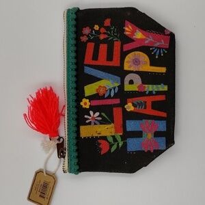 Natural Life Painted Canvas Coin Pouch LIVE HAPPY with tassel multicol…