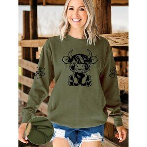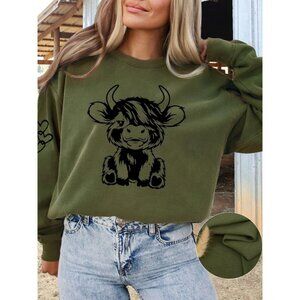 Features: Cute long sleeve sweatshirt featuring a lovable Highland cow graphic. Made with lightweight, breathable fabric that’s perfect for layering or casual days. Relaxed fit — true to size, so just pick your usual size for a comfy look.