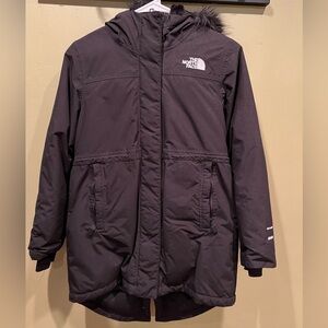 Warm and durable black jacket by The North Face. Ideal for winter adventures.