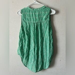 Elegant green blouse with button-down front. Sleeveless design with textured fabric. Perfect for casual or dressy occasions.