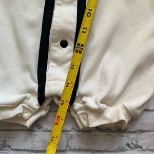 Fun little Y2K Nike Baby MLB baseball style romper. Sort of an off white with black striping. The Embroidered tag has a lil color bleeding with in it. Otherwise in good gently worn condition. Size 18 mos.