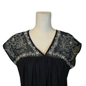 Lucky Brand Embroidered Linen Top Size Large Navy Blue Lace Bohemian