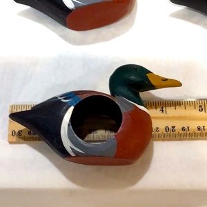 These unique carved wooden duck napkin rings are really special! Very lifelike rendering. Carefully hand painted. Each one is a work of art! In excellent vintage condition.