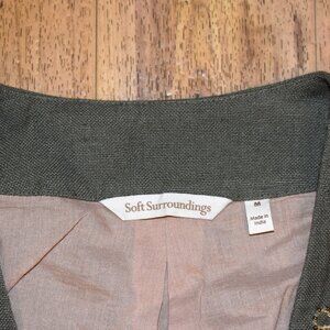 Soft Surroundings Green Linen Blend Embroidered Bolero Jacket Sz M