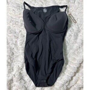 Smoothing bodysuit with full back coverage and a full underwire supportive bra.