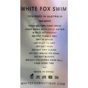 Item: White Fox Boutique bikini. The top is a bandeau style with a central O-ring detail, while the bottoms are cheeky