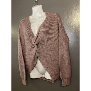 Love Tree Sweater Womens Medium Pink Twist Front Knit Long Sleeve V Neck Casual