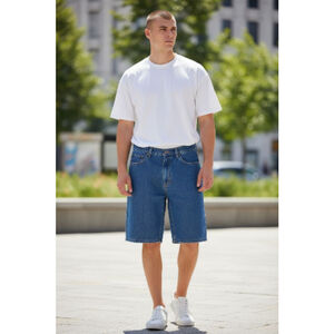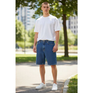 The George Men's 5-Pocket RELAXED About the Knee Shorts in size 34 x 10 are comfortable and stylish for men looking for a relaxed fit. Made from cotton denim fabric, these shorts feature a medium wash and come in a classic medium color. The relaxed style about the knee adds a casual and easygoing look, making them perfect for everyday wear. With a waist size of 34 inches and an inseam of 10 inches, these shorts offer a regular fit for a comfortable and practical wear.
