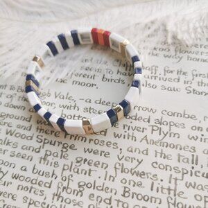 Roxanne Assoulin Project Stripe Navy White Gold Enameled Stretch Bracelet