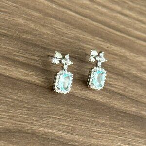 Stunning silver dangle earrings with blue gemstones. Perfect for any occasion. Stainless steel, 18K gold plated