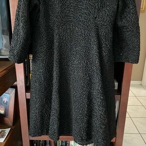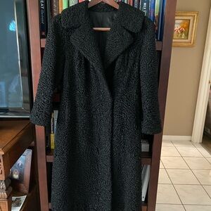 Curly Lamb Long Coat Wool Fur Black Persian Silk Lined Velvet Pockets Vintage