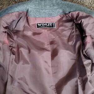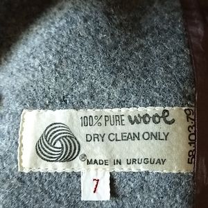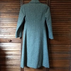 Women's gray wool princess style overcoat, dress length, 3 button single-breasted closure, shawl collar, 3 front pockets. Excellent condition. Vintage Size 7. Fits Size Small. Flat measurements: Bust - 17 inches, Waist - 15½ inches, Length from shoulder to hem - 42 inches, Sleeve Length - 22 inches, Shoulder Width - 14½ inches.