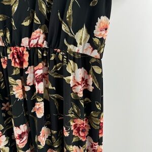 SirenLily Maternity Maxi Dress Large Black Floral with Bow Detail