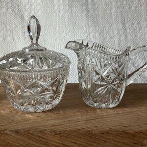 Vintage Brilliant Cut Glass Creamer and Sugar Bowl w/ Lid (Matching Pair)